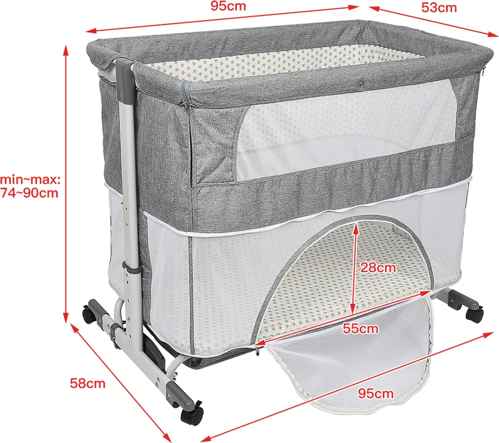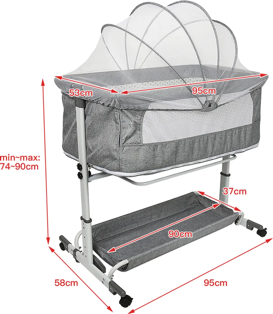 WYCTIN Beistellbett Mit Matratze Babybett Babywiege Reisebett Faltbar Stubenwagen Höhenverstellbar Mit Rollen Moskitonetz